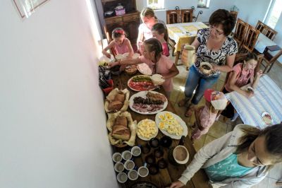PYSZNE JEDZENIE — uczestnicy bardzo chwalą sobie naszą kuchnię obozową. Nie są to tradycyjne polskie posiłki z wędlinami własnego wyrobu, jakie na co dzień możecie skosztować w Gospodarstwie Agro-Wolice. Za to posiłki są dobrane w taki sposób, aby smakowały przede wszystkim dzieciom i młodzieży. W tym roku kilkunastu zapisanych już uczestników zadeklarowało, że nie może doczekać się obozowych racuchów i innych pyszności z naszej kuchni.
