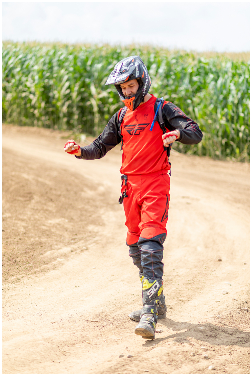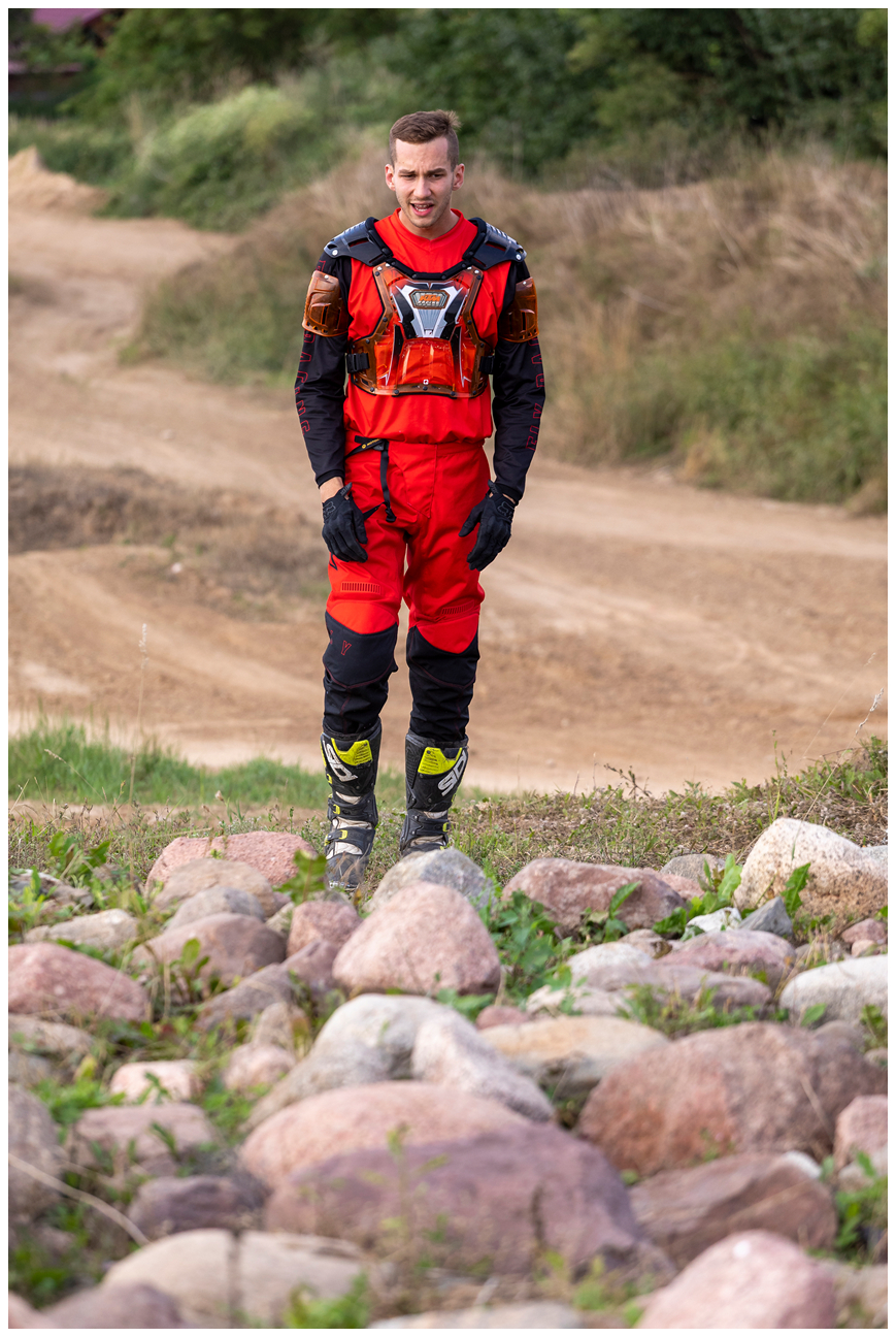 Sam strój motocrossowy (bluza oraz spodnie) nie jest obowiązkowy. Niemniej jednak zalecamy, aby korzystać przynajmniej ze spodni motocrossowych, wykonanych z bardziej wytrzymałego materiału.