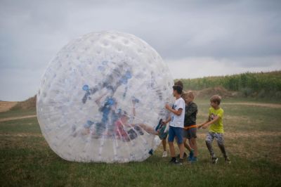 7. Zajęcia z zorbingu (trening zjazdu z górki w specjalnej kuli).
